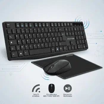 - Confort longue durée : Clavier ergonomique, souris silencieuse et tapis antidérapant.
